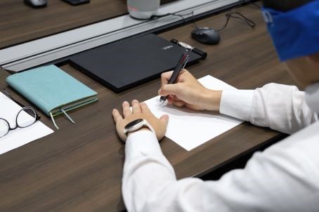 その傍ら、JBFAにて一般企業・学校などの団体向けの研修プログラムの企画立案や研修資料の作成などを担当。研修では受講者のビジネススキルの向上だけでなく、「障がい者が周囲にいることを特別なことだと思わない世界」の実現をめざしていると内田選手は語ります。そんな内田選手の趣味は、読書。本を読む際には、電子書籍の拡大機能や虫眼鏡を使用しているとのことです。