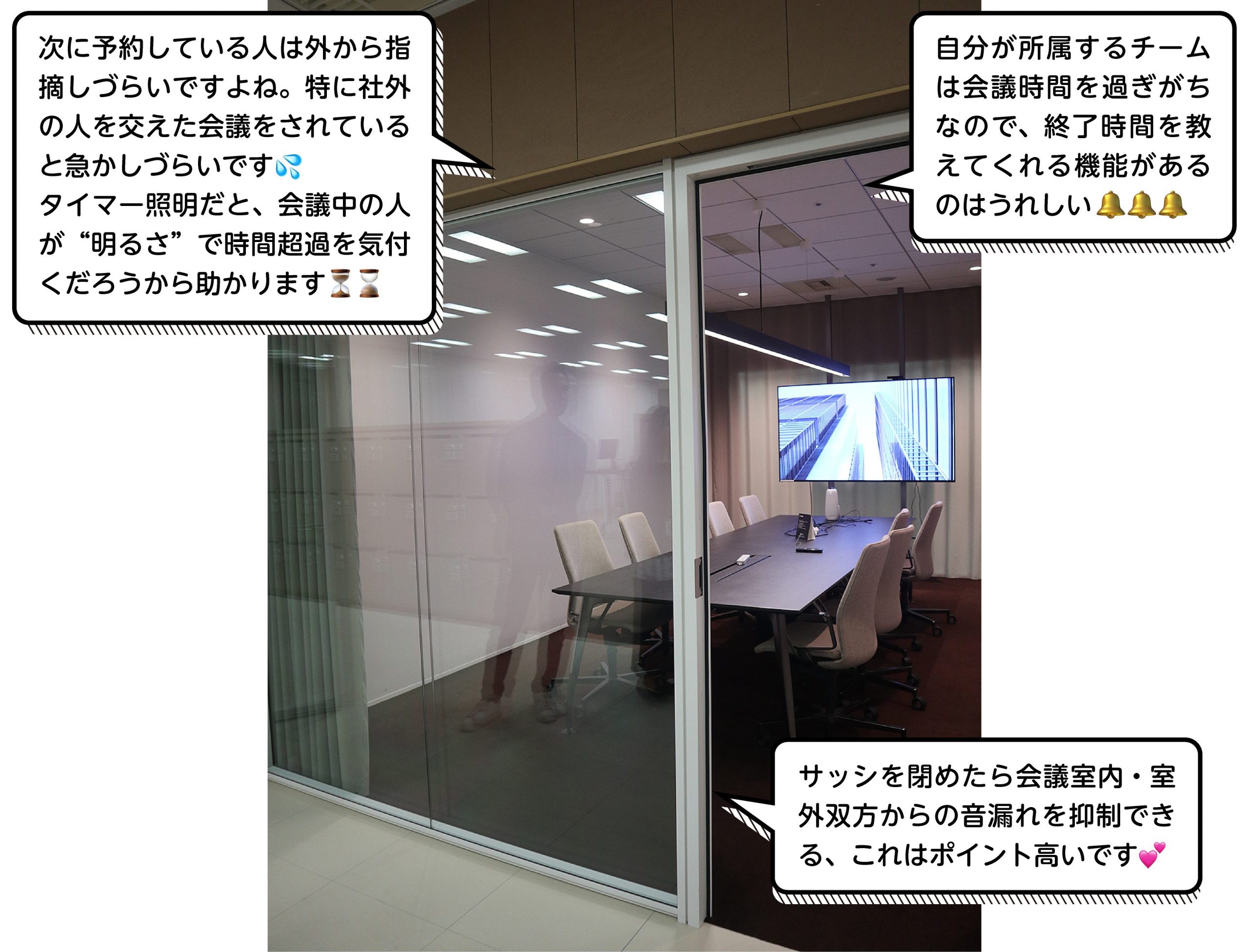 ・ タイマー照明で終了時間をさりげなく告げる“会議室”