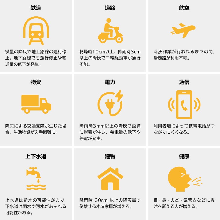 【図3】降灰によって生じる主な影響の一覧