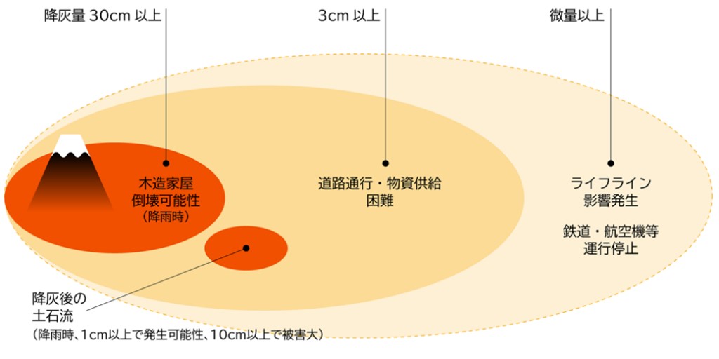 近年改めて意識されてきていることとしては、火山噴火による影響があります。日本が地震大国というのはよく知られているところですが、同時に111もの活火山を抱える世界有数の火山大国でもあり、こうした火山活動は決して他人事ではありません。特に首都圏で働く私たちにとって警戒すべきなのは、富士山の噴火でしょう。