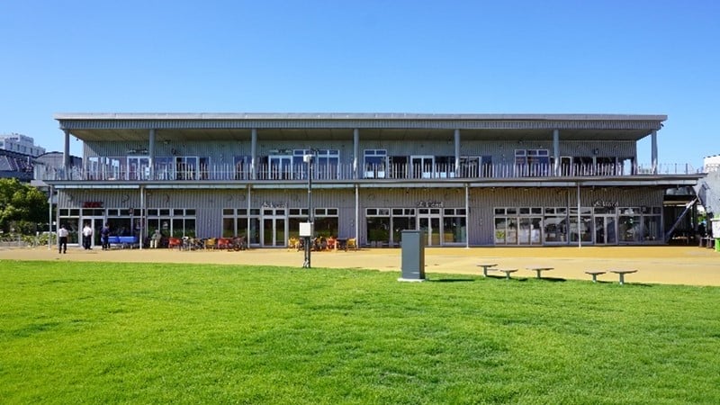 水辺ひろば側の商業施設 -