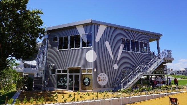 - 公募対象公園施設…都市公園法第5条の2第1項に規定する飲⾷店、売店などの公園施設を指します。本事業では全6棟の商業施設群を整備しています。