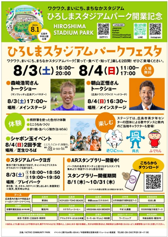 また、8月3日(土)、4日(日)の2日間、オープニングイベント「ひろしまスタジアムパークフェスタ」を開催いたします。