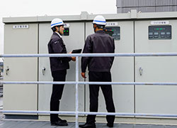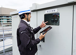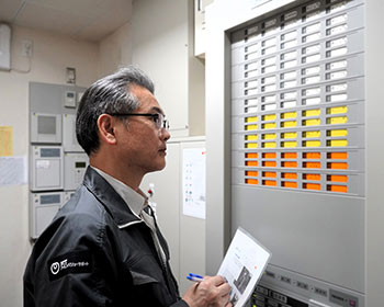 電気設備や情報設備、消防設備等の点検を行い、不具合の防止を図っています。 -