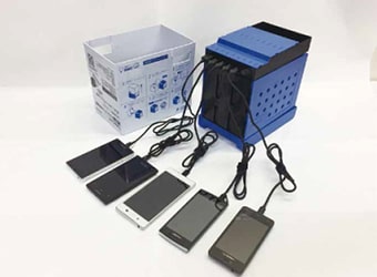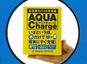水を入れるだけでモバイル機器の充電ができる蓄電池や、リチウムイオン電池を使用した可搬型蓄電システム